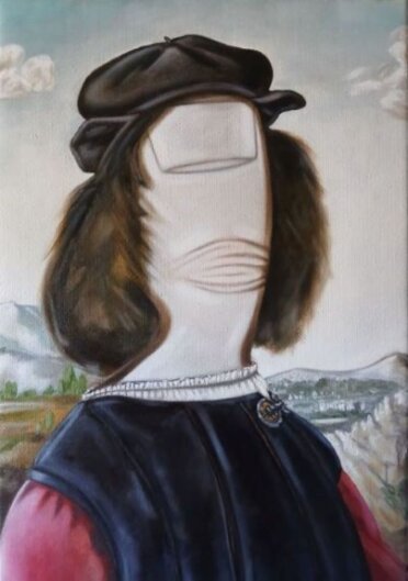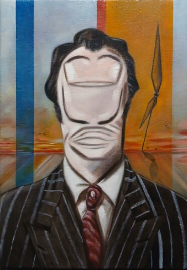 - IL CILINDRO DELLA PRESENZA: IL SEGNO BIANCO CHE SOVRASTA IL VOLTO DIVENTA IL NUOVO CENTRO DI GRAVITÀ DELL'OPERA. È LA DIMOSTRAZIONE CHE L'ESSERE (IL DITO) È SUPERIORE ALLA RAPPRESENTAZIONE (IL RITRATTO).